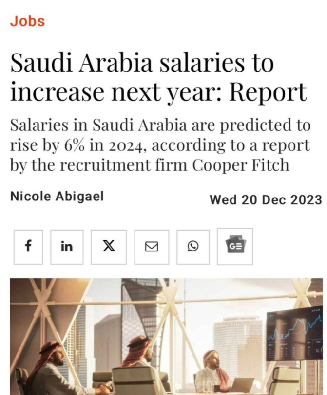 كشفت بعض التقارير الصادرة عن وكالة التوظيف كوبر فيتش، عن توقعاتها بزيادة الرواتب في المملكة العربية السعودية في عام 2024 بنسبة 6%.