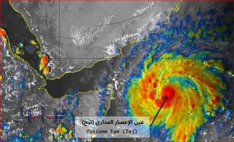 كان قد أعلن "عبد العزيز الحصيني" منذ ساعات ماضية عن قرب حدوث عاصفة في كثير من البلاد العربية والتي من المتوقع أن تتحول إلى إعصار مداري ويُسمى "تيج".