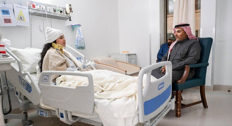 وظهرت مها الحملي وهي توجد داخل المستشفى وكان ظاهر معها في الصور رئيس اتحاد السيارات حيث قام بزيارتها؛ للاطمئنان على حالتها الصحية .