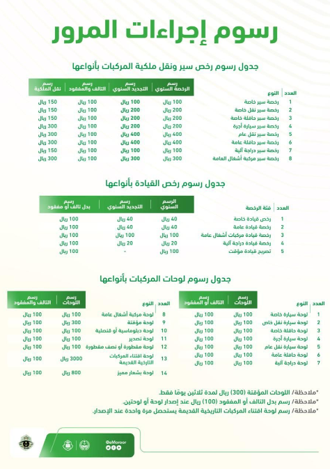 وأوضح أن رسوم لوحة المركبة بدل فاقد جاءت مختلفة باختلاف نوع المركبة كما يلي: