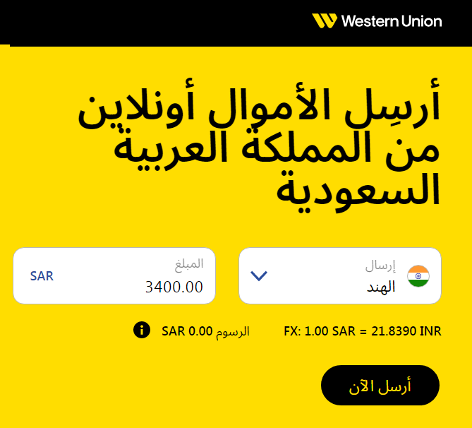أقصى مبلغ يتم تحويله من ويسترن يونيون في السعودية