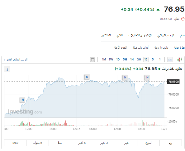 نسبة كبيرة من الأشخاص في المملكة العربية السعودية ترغب في التعرف إلى سعر النفط في المملكة لما يمثله من تأثير كبير على الاقتصاد السعودي، واليوم السبت نجد أن سعر برميل نفط برنت هو 76.95 دولار أمريكي.